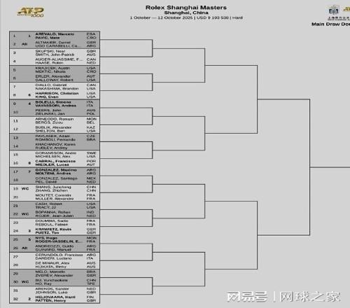 另外,上海大師賽的男雙簽表昨天下午出爐。中國(guó)有兩對(duì)組合參賽,其中商竣程/張之臻首輪對(duì)陣法國(guó)組合穆泰/A-穆勒,布云朝克特/何承叡迎戰(zhàn)梅羅/茲維列夫。