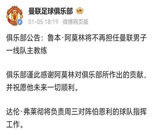 2026年1月5日,曼聯(lián)官方公告瞬間引發(fā)足壇熱議,主教練魯本-阿莫林正式下課!